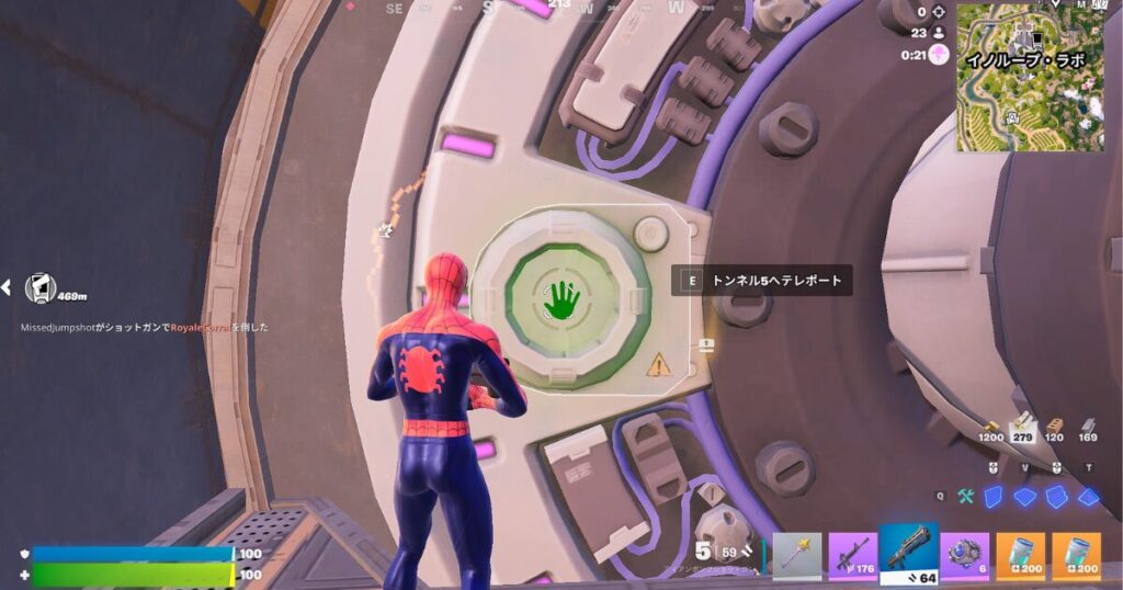 イノループ・ラボ経由では、ゼロポイントの欠片の真下にあるガラスを壊すとすぐ地下にいけるので、ここからのスタートがおすすめです。