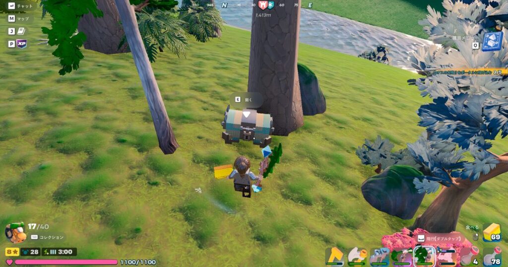 また竹の木は、ある程度の数がまとまって生成されているため、1度見つけられたら短時間で十分な量を集められます。