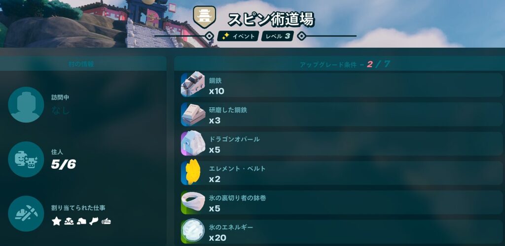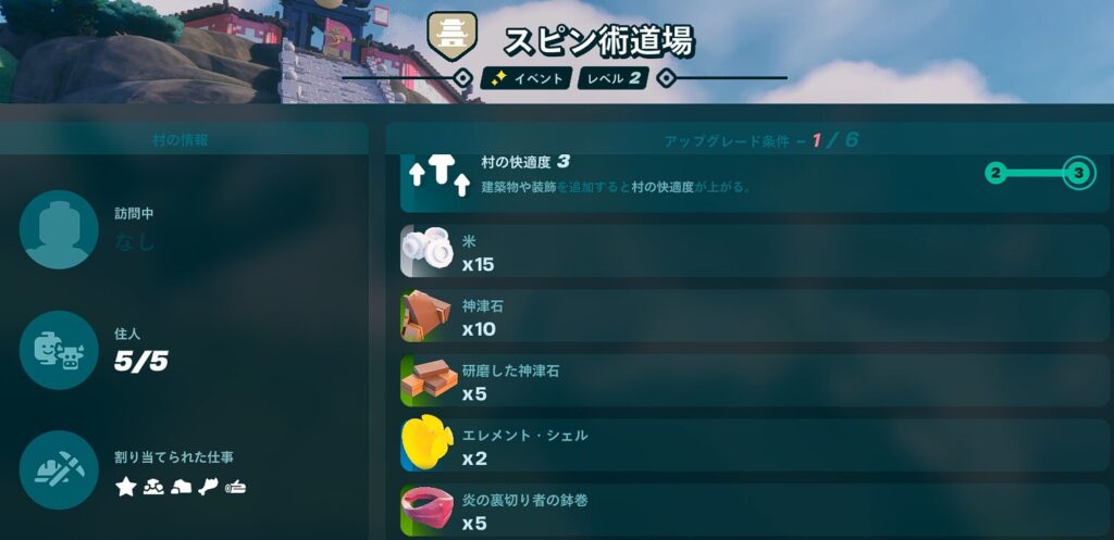 スピン術道場のアップグレード要件まとめ【レベル1~5】