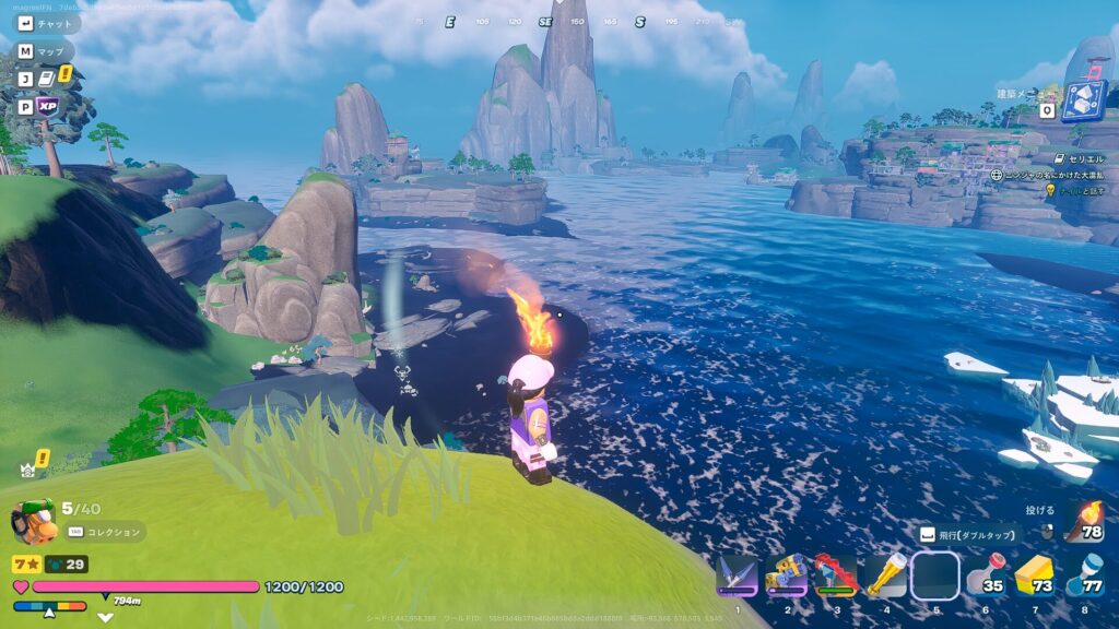 島の中央にそびえる岩山の山頂を起点に、その周囲には新たなロケーションやバイオームが広がっています。