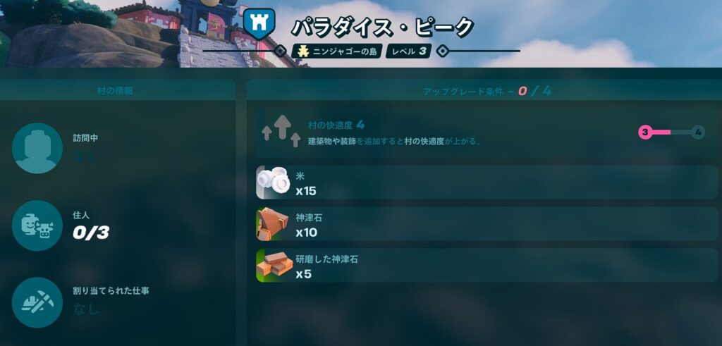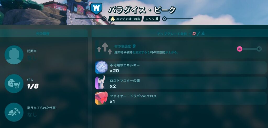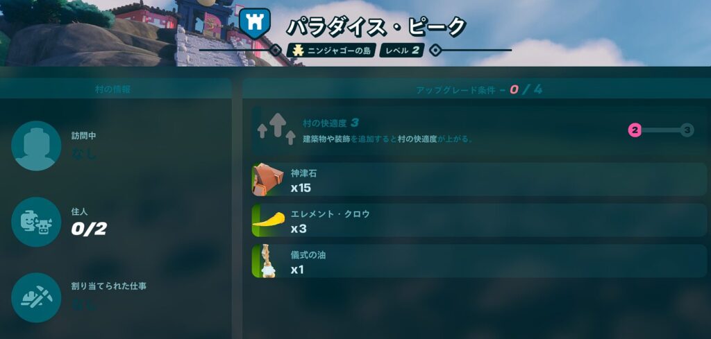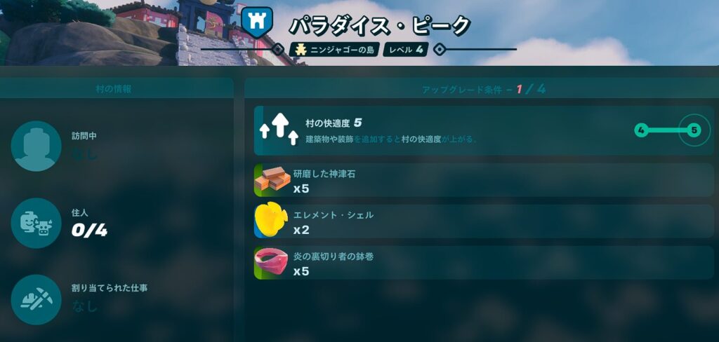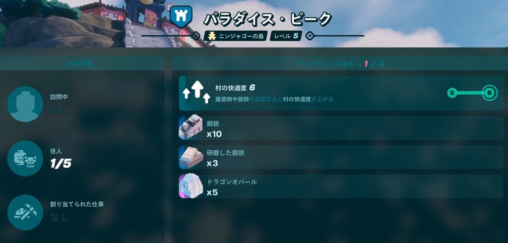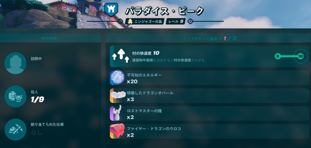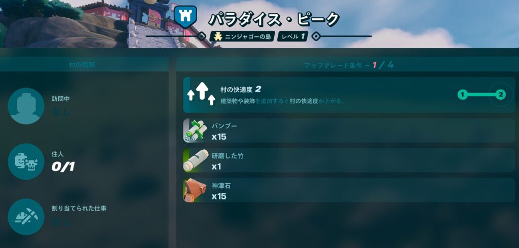 ニンジャゴーの島の村のアップグレード要件【レベル1~10】